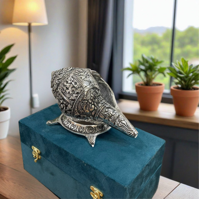 Silver Plated Decorative Shankh for Home Temple & Vastu