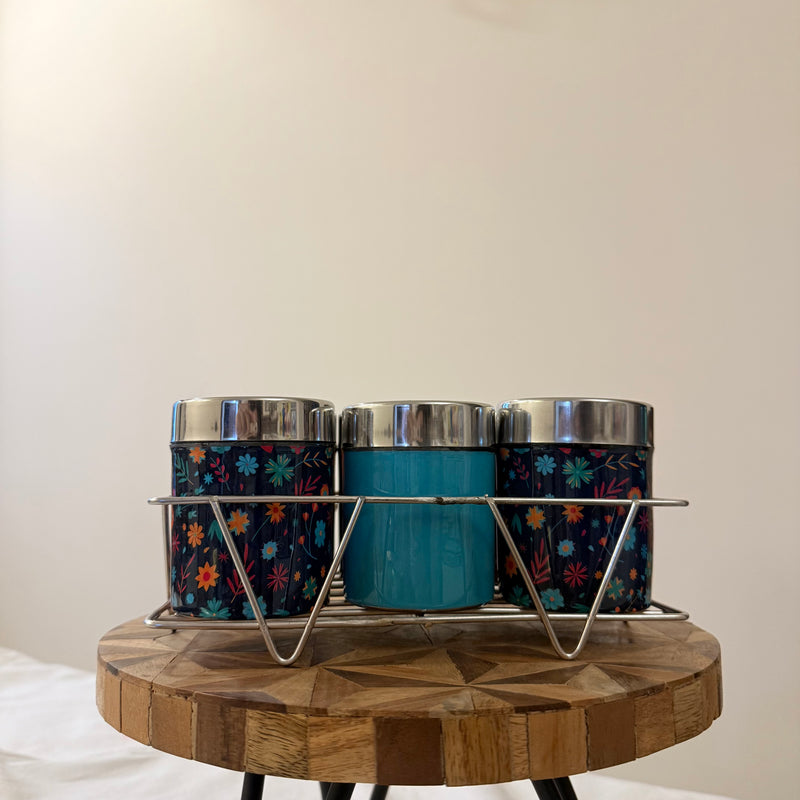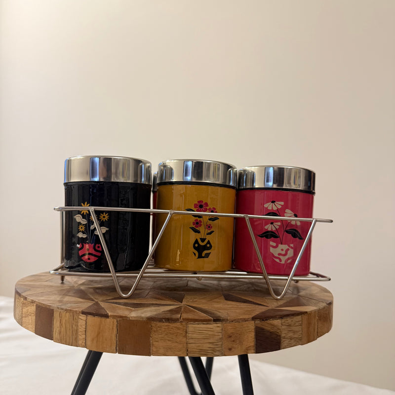 Meenakari Masala Jar Set with Stand | Spice Container Set for Kitchen
