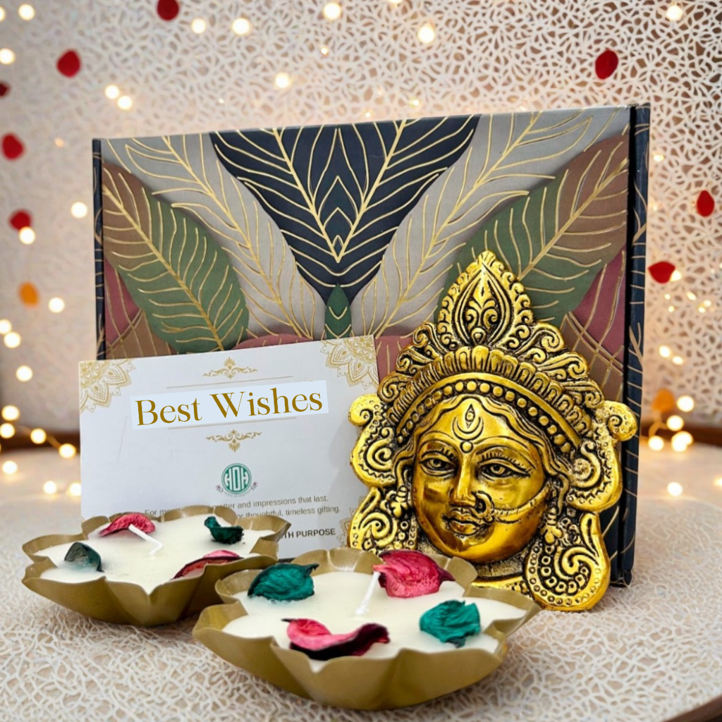 Gift Box – Durga Face & Metal Wax Diya Combo