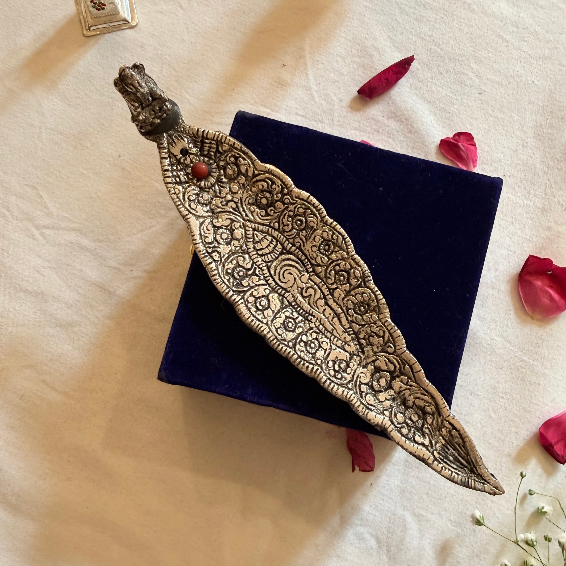 German Silver Leaf Incense Holder | Antique Style Agarbatti Stand for Home Temple & Pooja