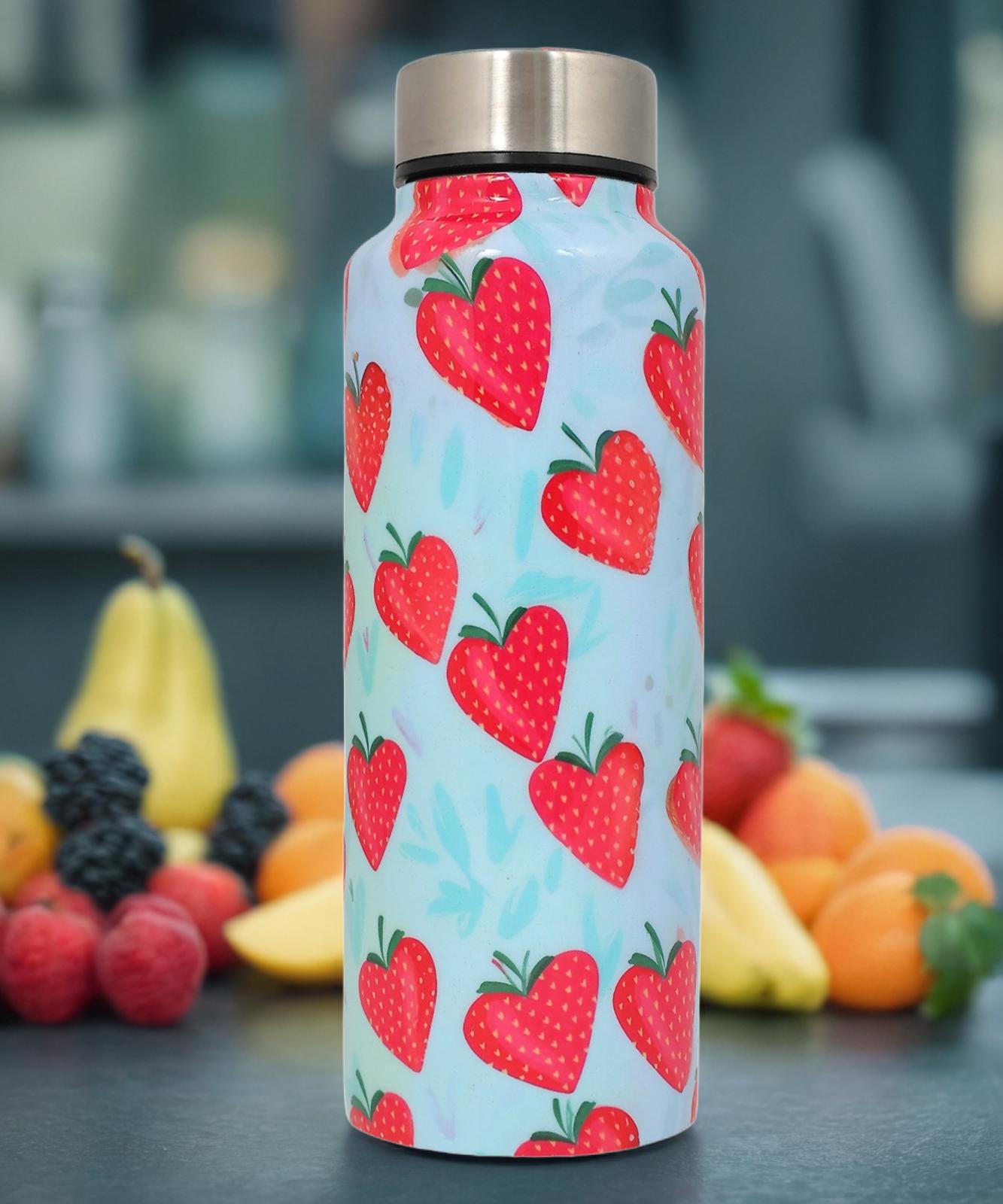 Handcrafted Eco-Friendly Meenakari Stainless Steel Bottle(750 ML)-Strawberry