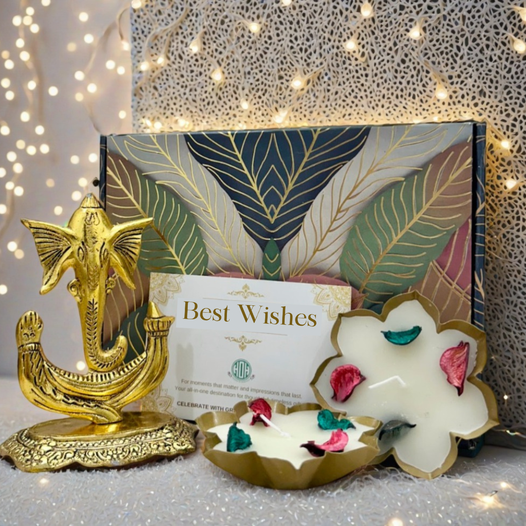 Gift Box - Trishul Ganesh & Metal Diya Combo